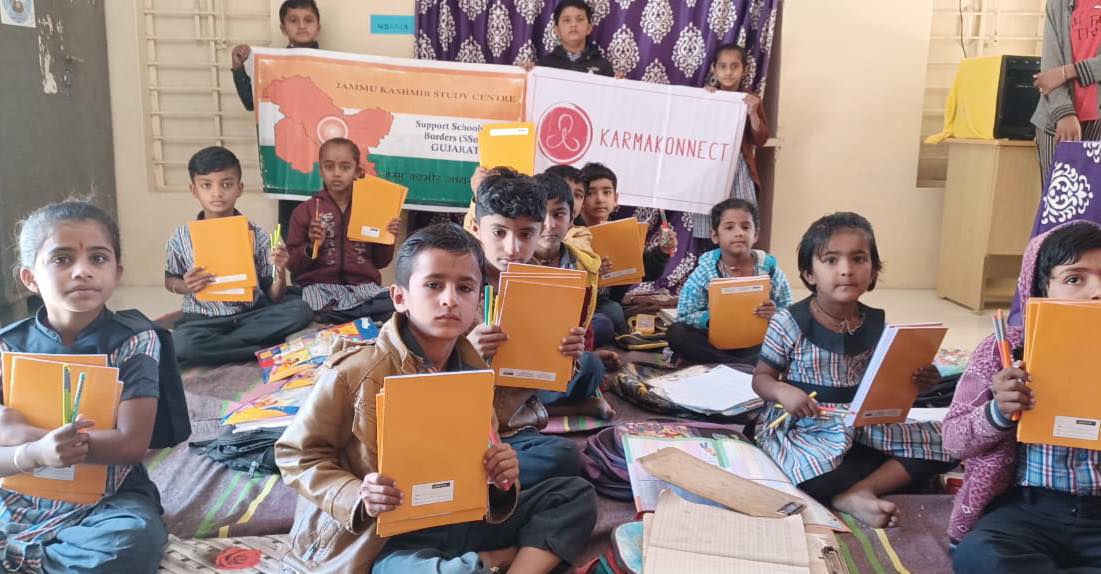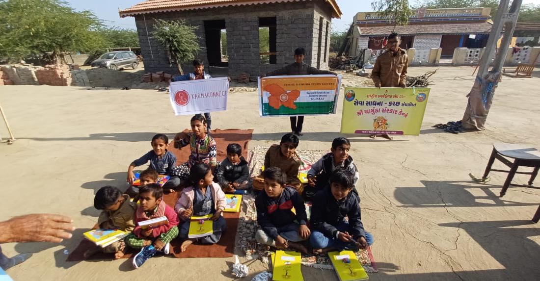 KarmaKonnect's main objective to provide essential school supplies and educational support to underprivileged children in remote border areas of Kutchh, Gujarat, ensuring uninterrupted learning and opportunities for higher education.
